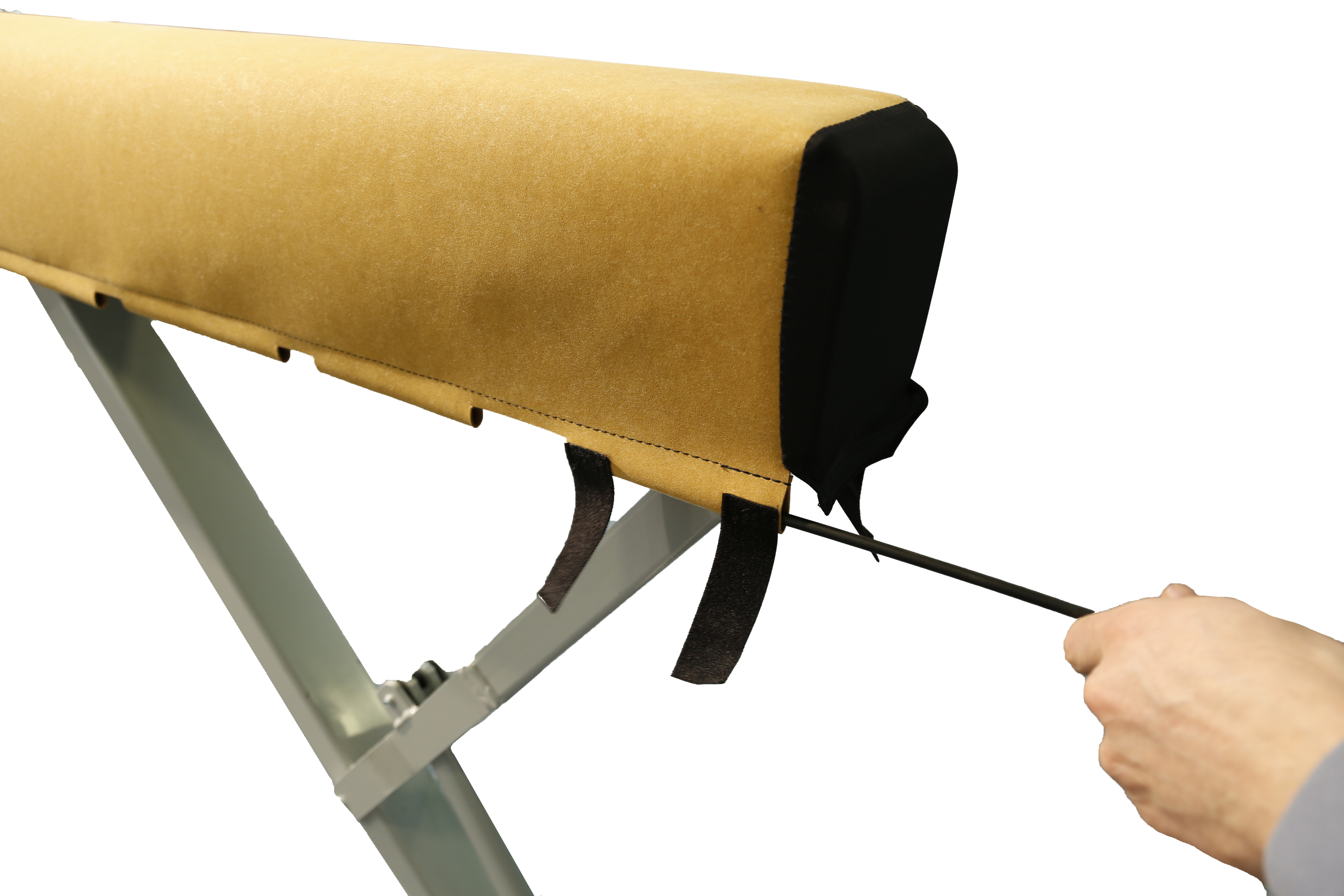 Einfach anzubringen und auch wieder zu entfernen. Die vorhandene Polsterung wird dabei nicht beschädigt. Geeignet für Schwebebalken "Club"und "Soft Touch" in einer Länge von 5m. Der Überzug wird mit Klettband befestigt, woduch die Spannung des Überzugs optimal eingestellt werden kann.